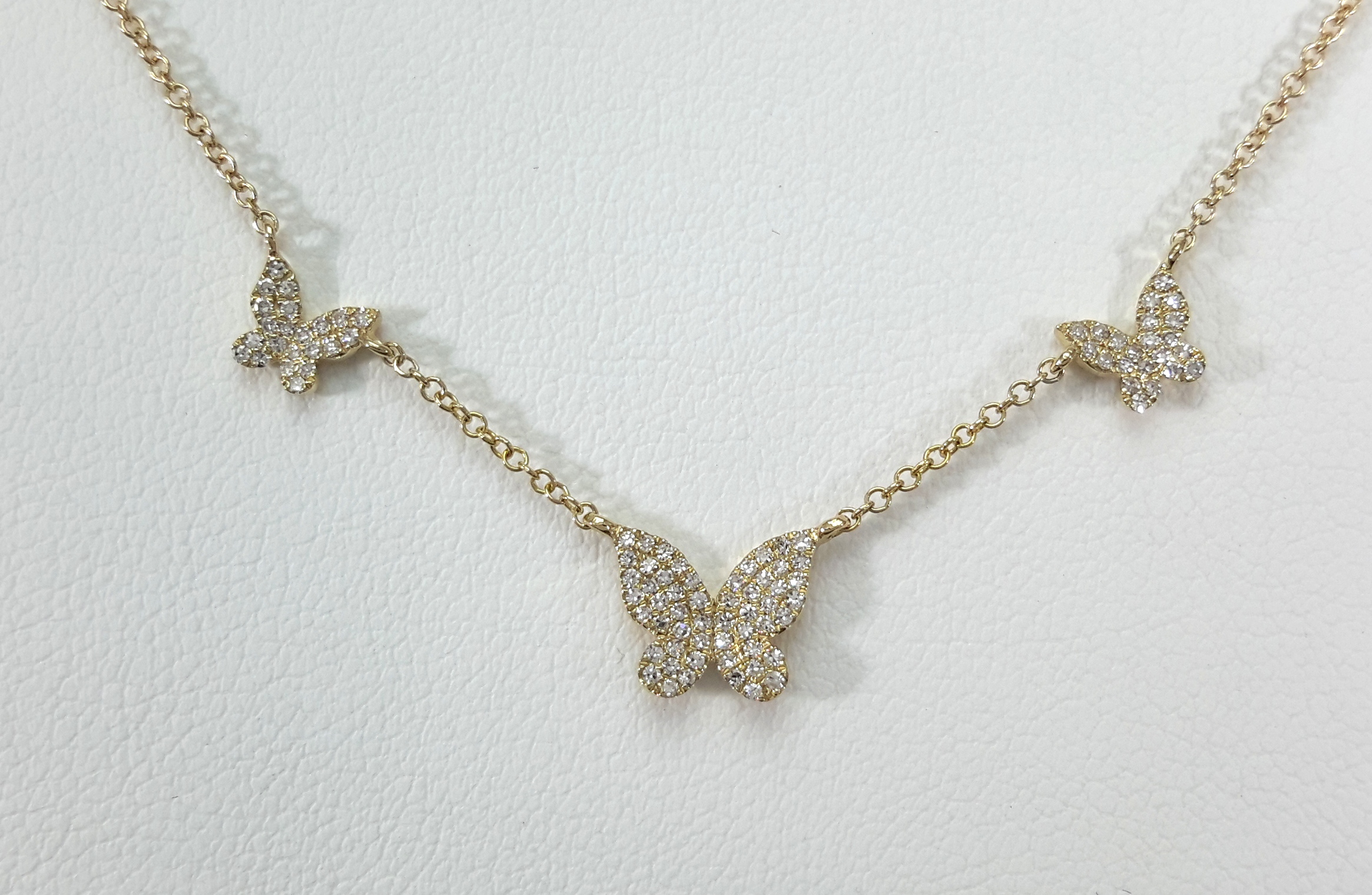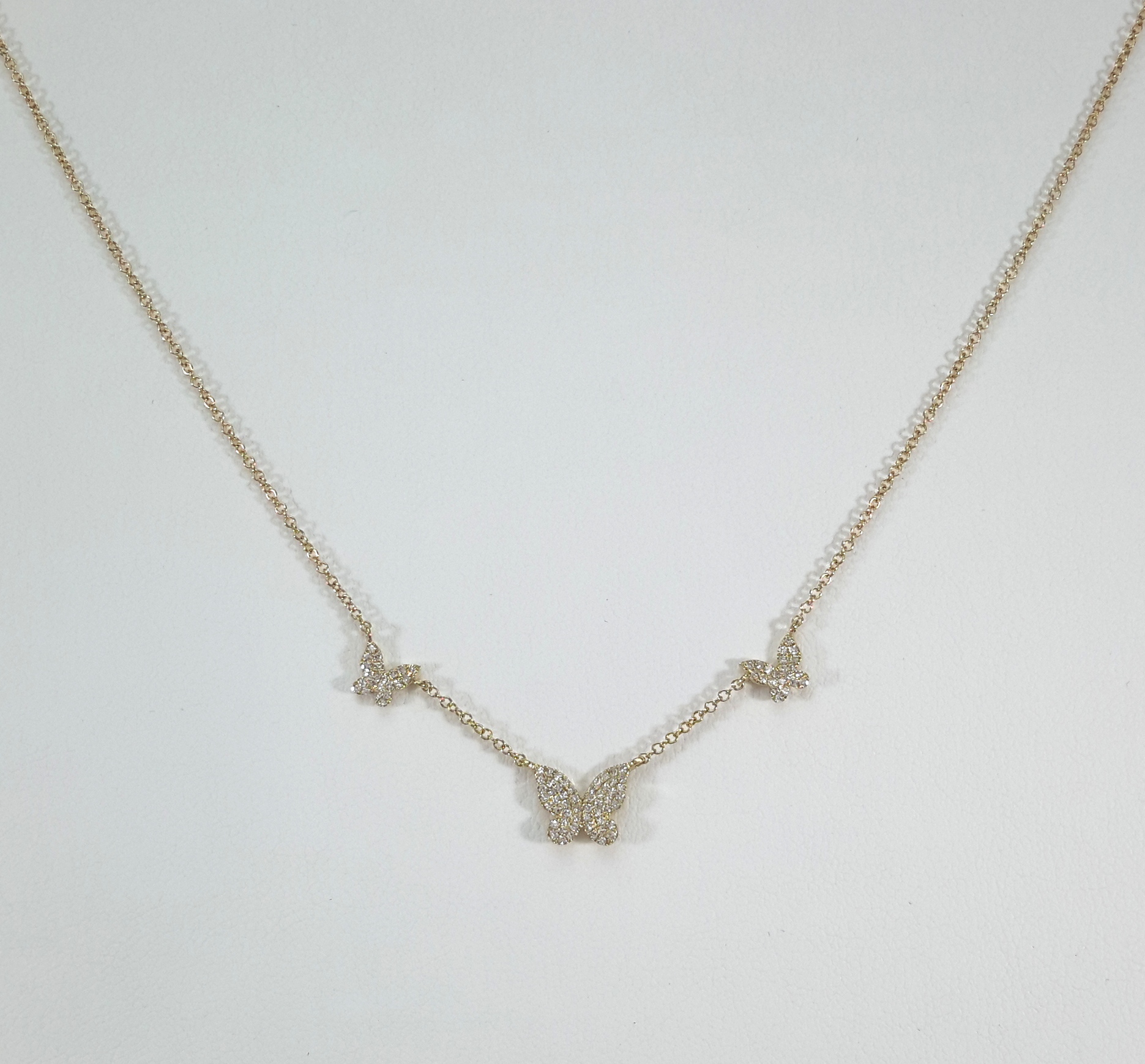 THREE BUTTERFLY DIA 14KY NECKLACE