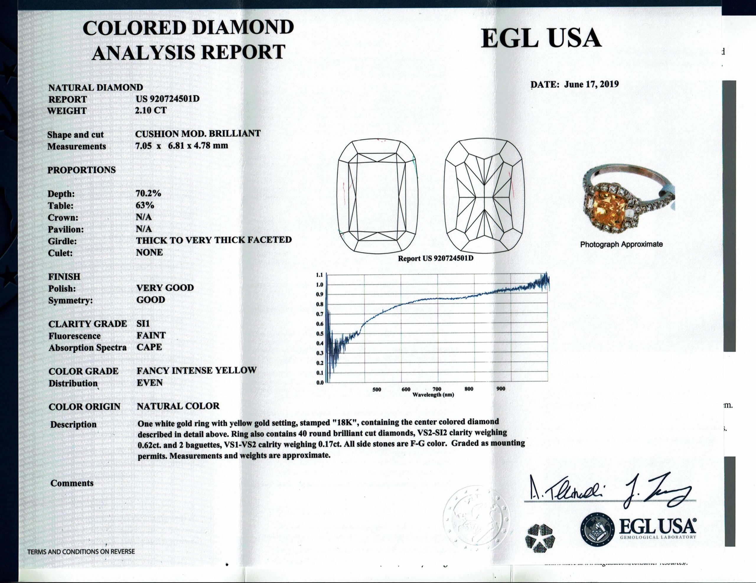 18K TT DIA RING; 2.10 DIA CU FY SI2 (GIA) FC134;