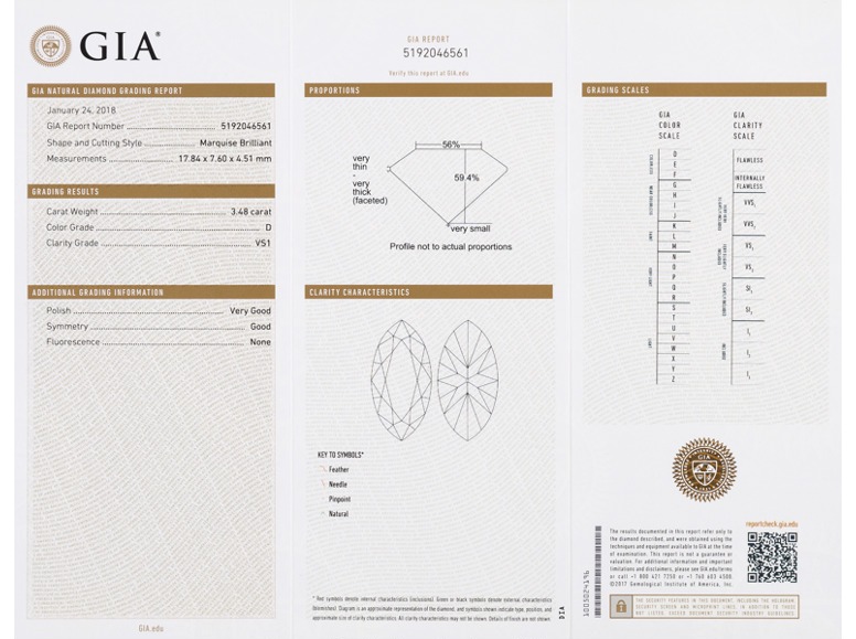 Plat MARQUISE DIA SOLITAIRE RING; 3.48 DIA MQ D VS1 (GIA) 5192046561 FM630;