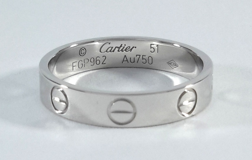 18KW CARTIER LOVE MINI RING; FGP962 W/ BOX & CARTIFICATE; DESIGNER SIZE 51; W/ BOX & CARTIFICATE; 3.6MM