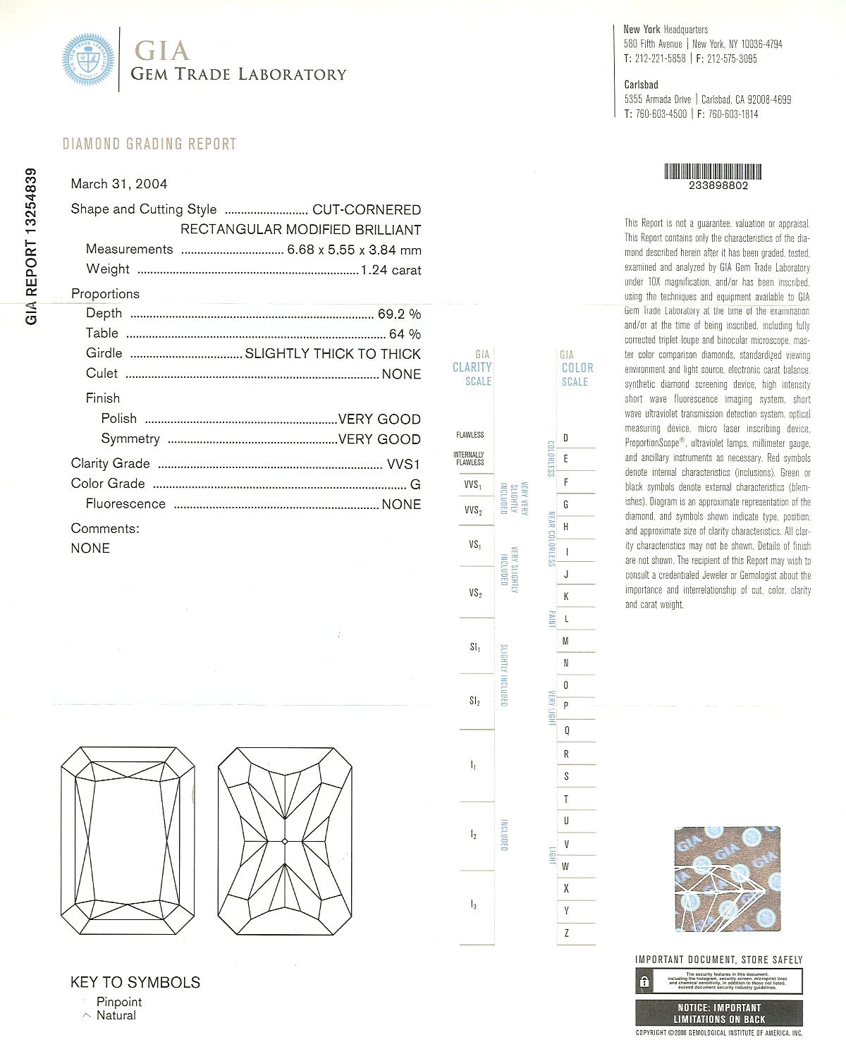 FR594 Plat RING 1=1.74; RA G VVS1 GIA 1.24;