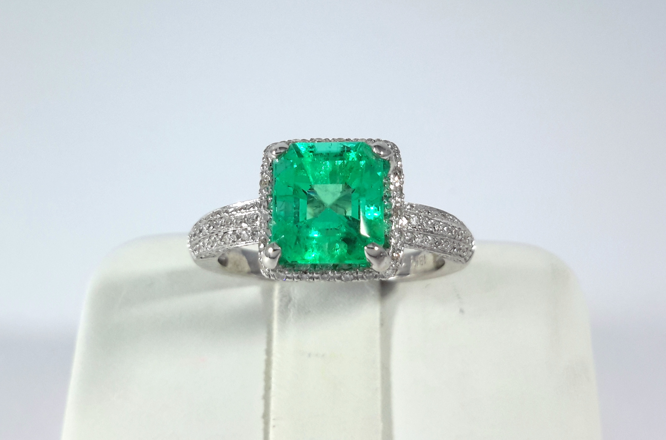 18KW EMERALD DIA RING; 2.05 EMLD EC CE479;
