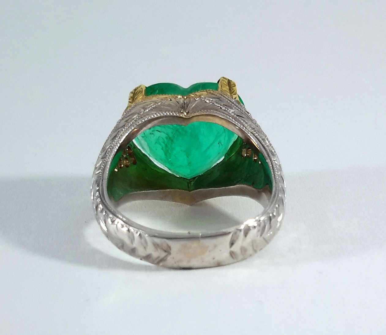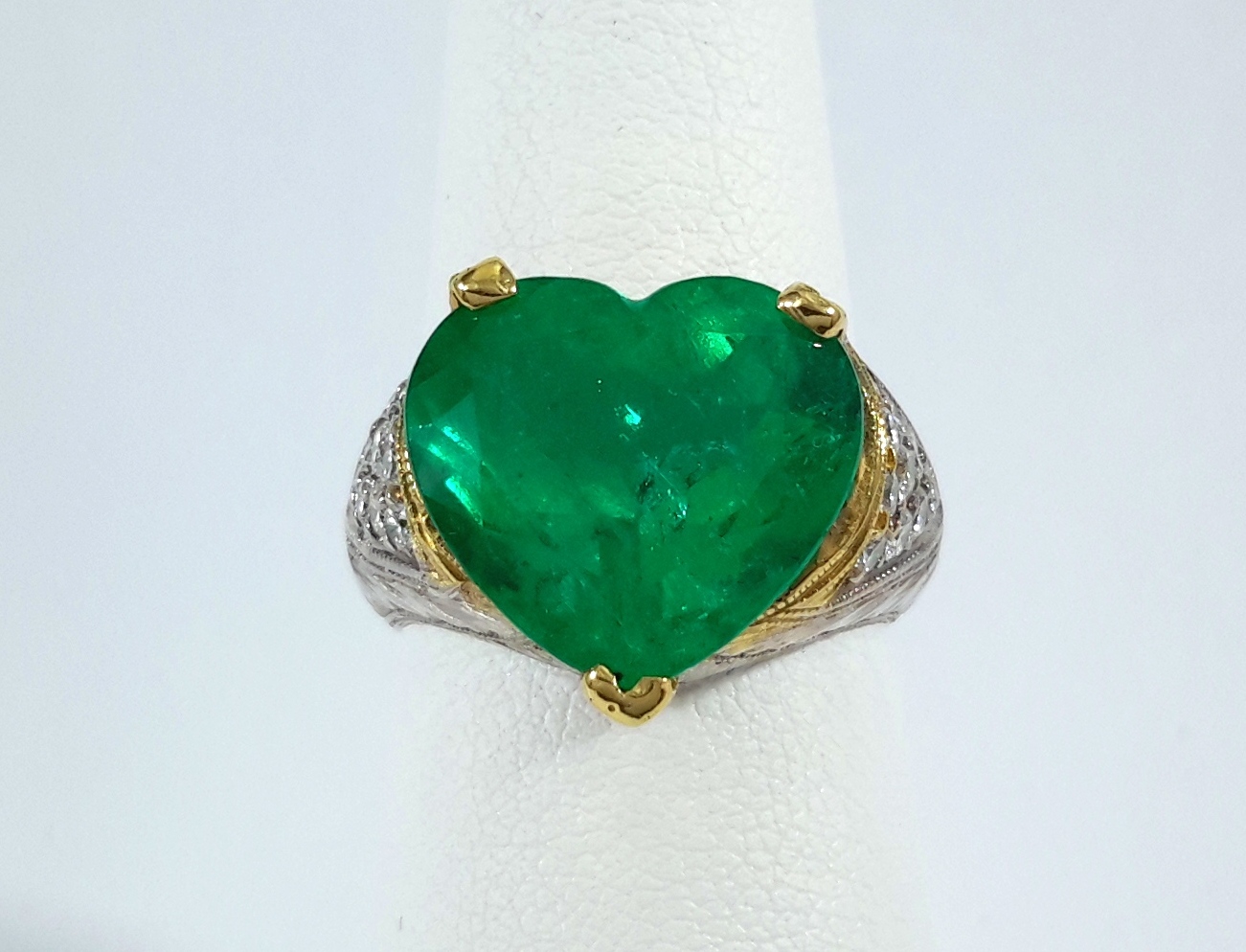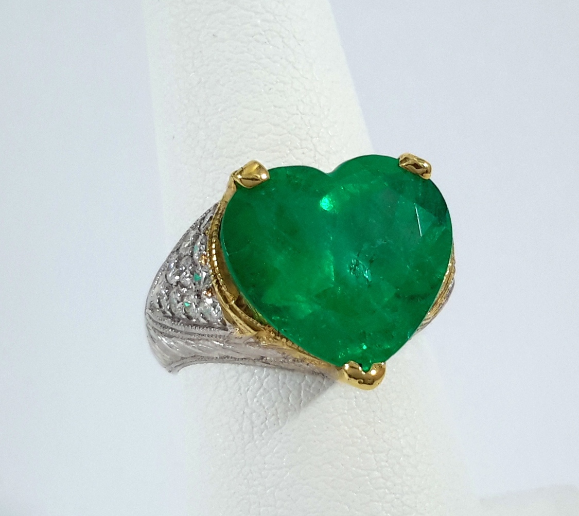 18KTT HEART-SHAPE EMERALD DIA RING