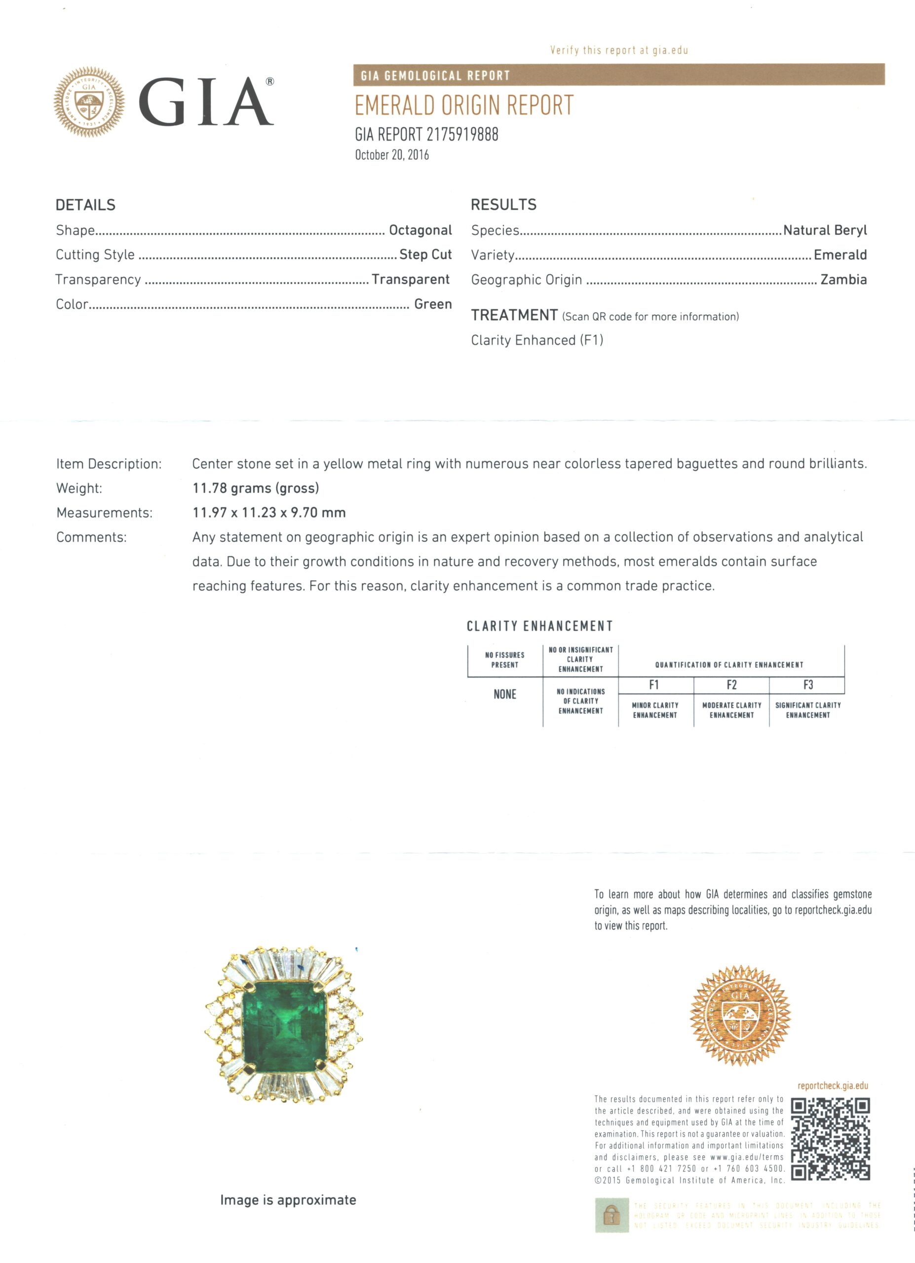 GIA Emerald Zambian F1 14Ky RING