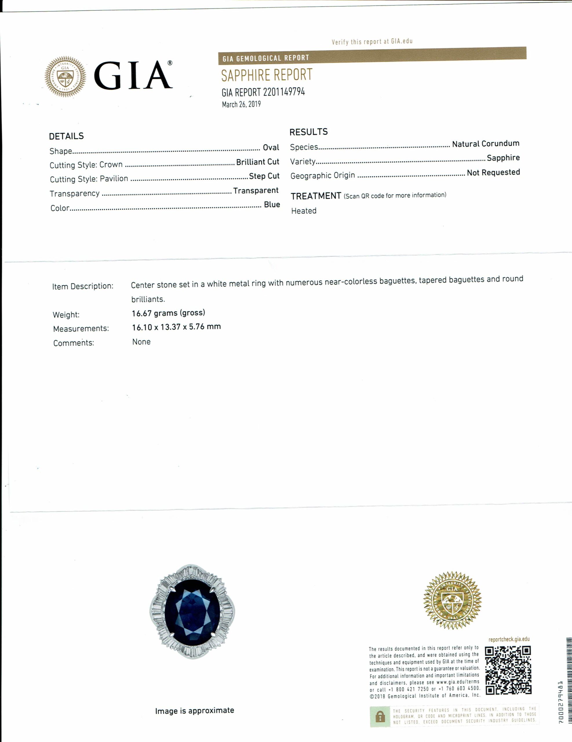 PLAT DIA/SAPHIRE RING H; ; H; GUILD LAB Report; GIA