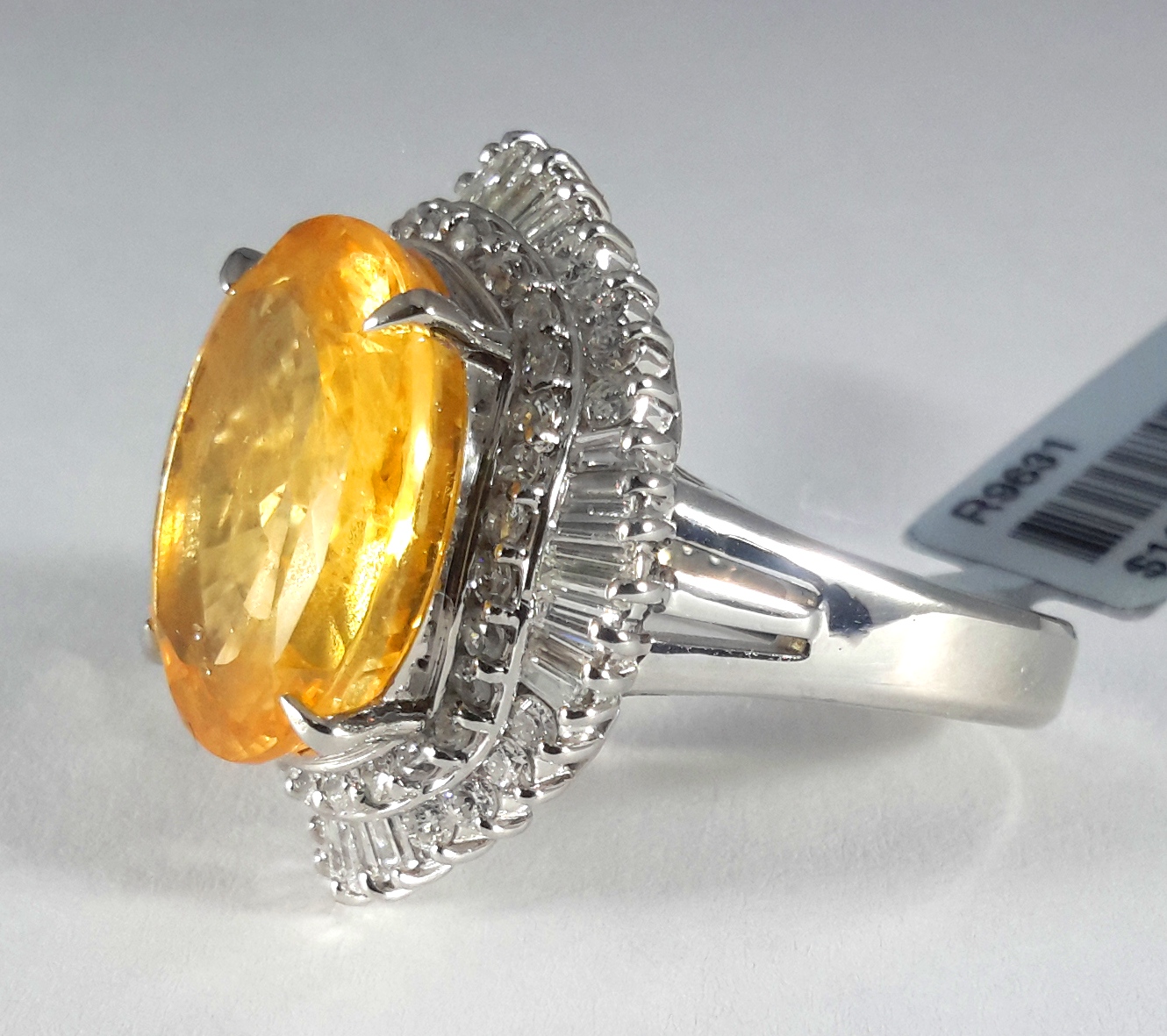 PLAT YELLOW/ORANGE SAPP/DIA RING; ;
