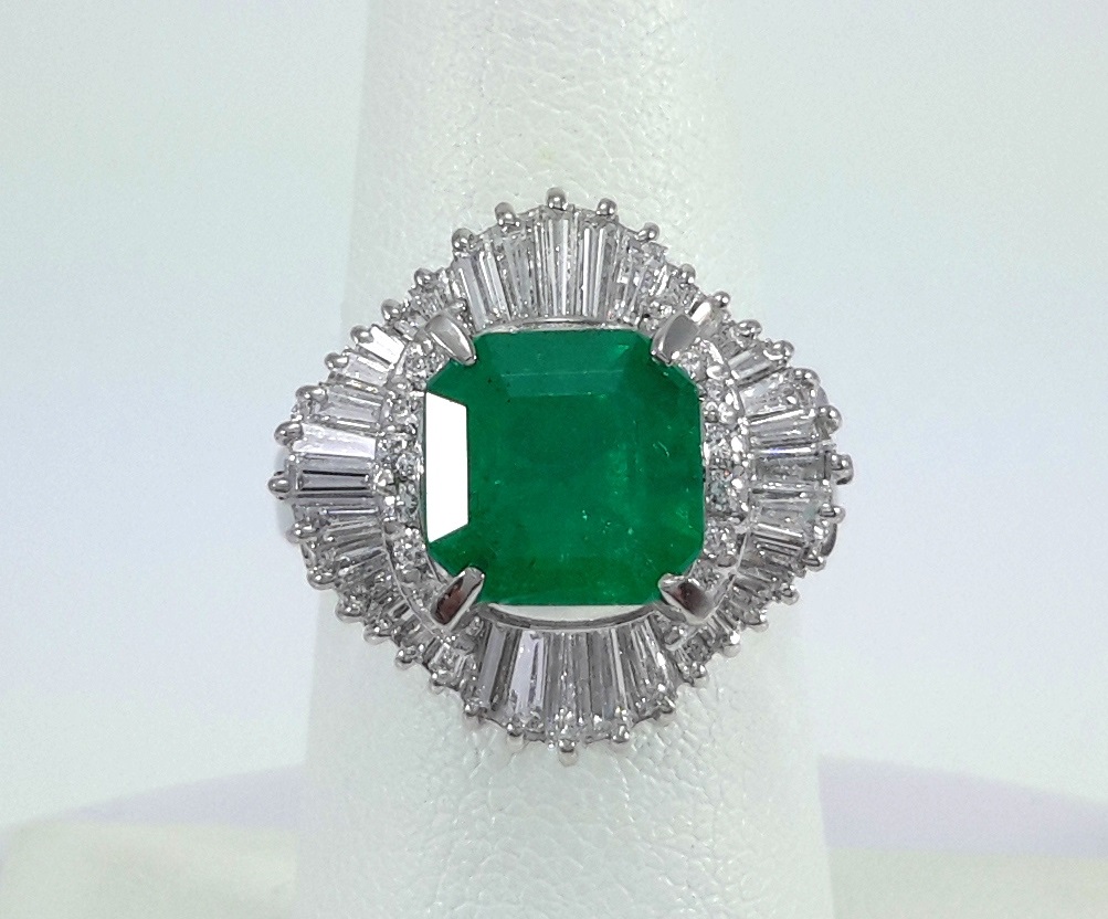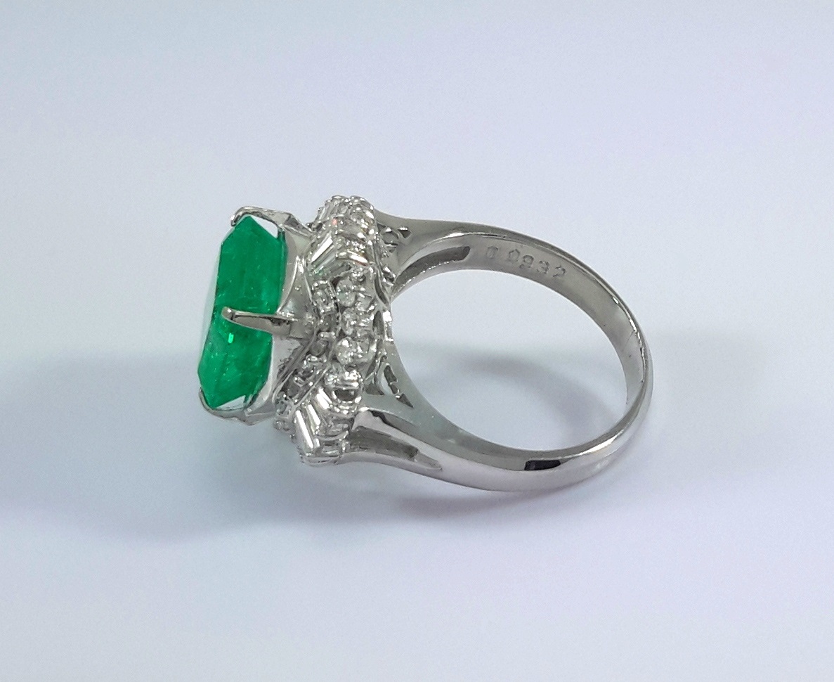 3.74CT EMERALD & DIA PLAT RING; 3.74 EMLD EC (GIA) 6187874840 CE498; RING SIZE 6.75